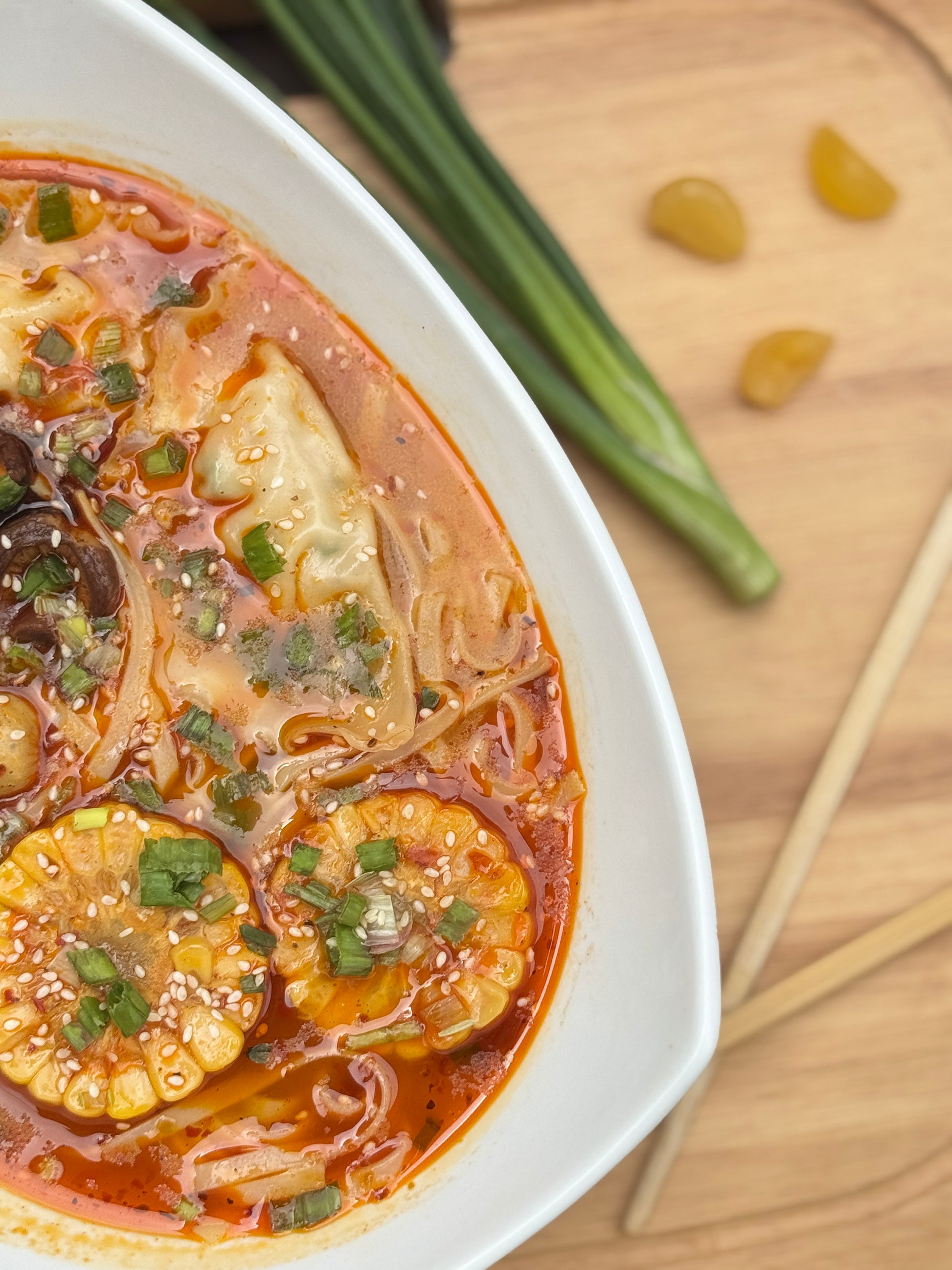 A hearty hotpot-in-a-bowl with noodles, rich broth, and our signature chili oil. Each Fire Bowl comes with 2 shiitake mushrooms, 2 corns, 2 dumplings, and 2 sausages, making it the perfect mix of flavor and comfort.